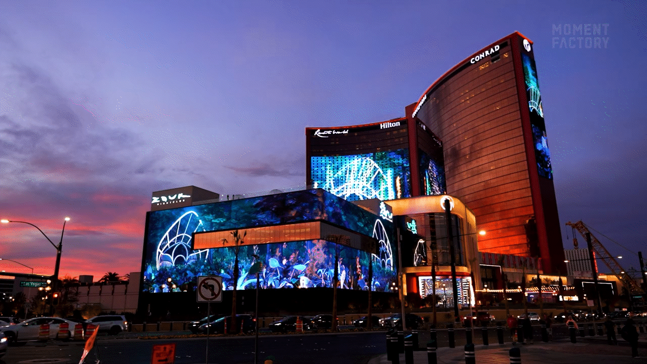 Moment Factory oversaw the production of creative video content including five show capsules and interstitial visuals, helping to bring the resort’s media architecture to life. This ambitious project marks our latest effort in leveraging new media platforms to enhance and transform urban destinations.