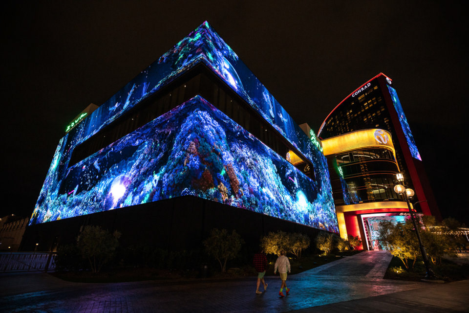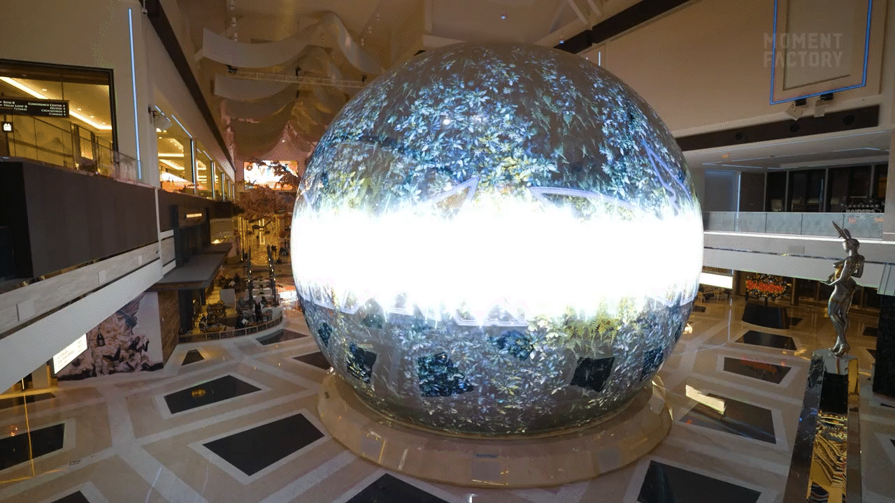 Show capsules were created to be displayed simultaneously across the resort on over 100,000 square feet of multimedia LED displays along the West Tower, East Tower and Zouk Nightclub facades, as well as over an iconic 50-foot Globe located inside the property. These media centerpieces are quickly becoming central elements of Resorts World Las Vegas’s branding.